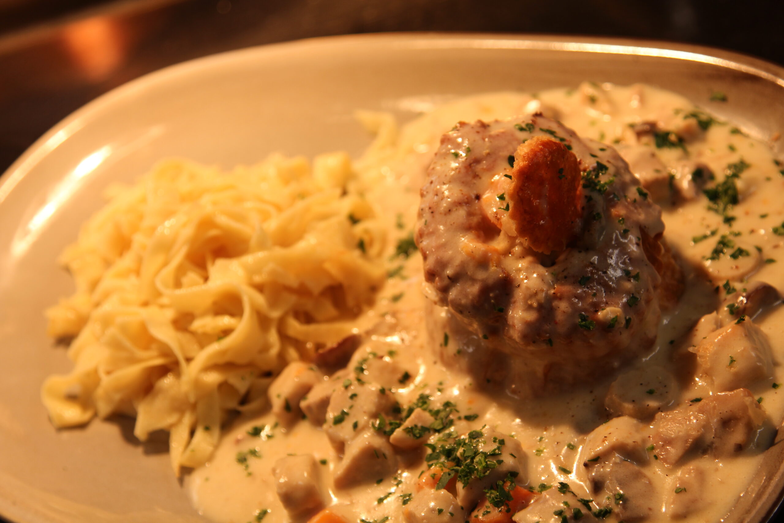Accompagné de ses nouilles faites maison. Médaille d'argent obtenue pour le prix de la meilleure bouchée à la reine à la Foire Européenne de Strasbourg en 2019.
